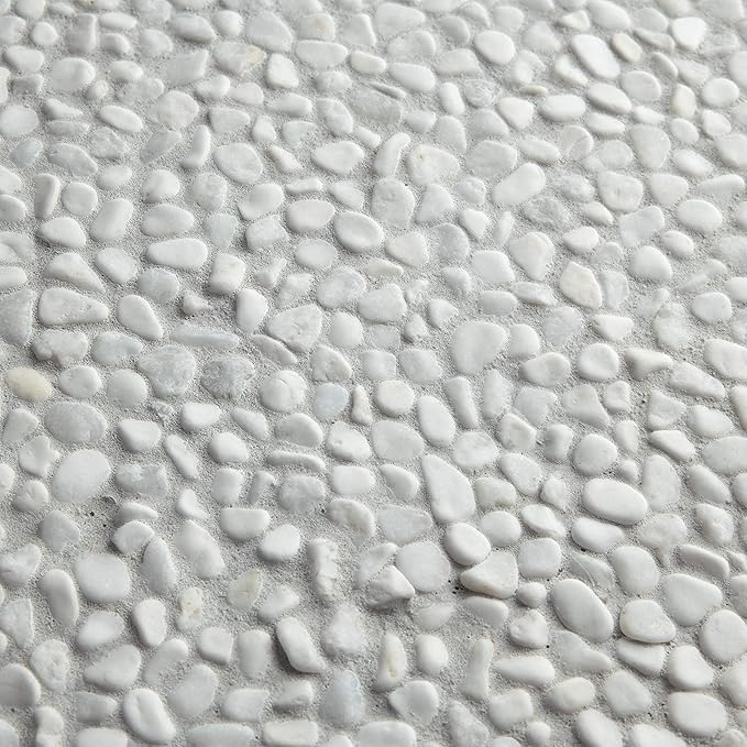 Somertile Pgypwt Caillou Pebble Stone Mosaic Floor And Wall Tile 12 25 X 12 25 White Amazon In Home Kitchen